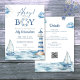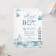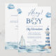 'Alô, É um Menino' convite de chuva de bebê náutico, personalizado com seu nome e data especial. Com o código QR do seu registro e detalhes do evento no verso. Criado por Thisisnotme©