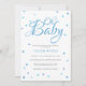 Com o cabeçalho Oh Baby em azul, lindos corações de amor azuis estão espalhados em torno dos seus detalhes personalizados definidos em texto elegante neste convite de chuva de bebê, chique ou para o casal. Concebido por Thisisnotme©