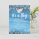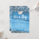 Convites de chuva de bebê tema inverno menino com fundo azul gelo, flocos de neve brancos cintilantes, coroa prateada e modelo personalizado de chuva de bebê.