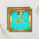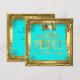 Chuva de Bebê Príncipe Menino. Coroa Dourada Dourado Turquesa Azul Verde, Chuva de Bebê Menino Fofa. Fundo turquesa e moldura dourada. Convite de Festa "é menino". Convites de Festa
