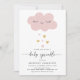 Convites Chuva de Bebê Rosa e Dourado Nuvem e Corações Fofo