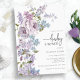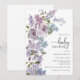 Convite de Chuva de Bebê Roxa Elegante. Desbloqueie o charme da elegância rústica com nossos convites de chuva de bebê impressionantes. Pintados à mão em tons de roxo e azul que refletirão a atmosfera única da sua chuva de bebê rústica, ao ar livre ou clássica.