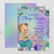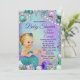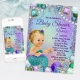 Convite de chuva de bebê sereia com adorável bebê sereia loira com cauda azul turquesa em um lindo fundo de joias submarinas. Este convite de chuva de bebê sereia é facilmente personalizado para o seu evento, basta adicionar os detalhes do evento.