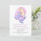 Convite adorável de chuva de bebê da sereia cor-de-rosa pastel aquarela para menina. Design feminino que você pode personalizar com seu nome e texto para uma chuva de bebê. Este é um convite digno de uma pequena princesa!