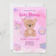 Convites Chuva de Bebê Urso Cartoon Rosa