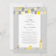 Celebração colorida de chá de bebê em tons de amarelo e cinza, neutra em termos de gênero, o design do chá de bebê virtual online apresenta caligrafia e escrita na moda em cinza dispostas em uma borda divertida cercada por bandeiras e confetes coordenados. Na parte inferior do design, você encontrará mais confetes junto com uma mamadeira, um patinho de borracha, um chupeta e alfinetes de fralda. Para obter os melhores resultados, siga as instruções do modelo e o espaçamento ao inserir seus detalhes. A parte de trás do cartão tem um padrão de bolinhas cinza em um fundo amarelo iluminado e combina com uma das bandeiras no banner. Envie um e-mail para convitesuites@gmail.com com perguntas ou solicitações personalizadas.