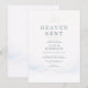 Elegante convite de chá de bebê com nuvens suaves e detalhes inspirados em anjos para uma celebração doce e serena. Projetado para criar uma atmosfera pacífica e sincera para dar as boas-vindas a um novo bebê. Perfeito para chás de bebê, celebrações de bebê e celebrações neutras em relação ao sexo. Texto editável. Layout limpo e pronto para impressão.