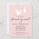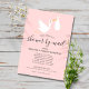 Com uma cegonha fofa carregando uma entrega muito especial, em um fundo rosa bebê, este convite de chuveiro de bebê, chuveiro ou casal pelo correio é perfeito para todos os pequenos que estão a caminho. Adicione os detalhes da sua celebração em texto elegante para criar o convite perfeito. Criado por Thisisnotme©