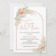 Convite de chuveiro de casais moderno em dourado rosa falso com estilo de caligrafia taco 'bout amor, em um estilo boêmio com um arranjo de cacto florido laranja, grama pampas e um arco dourado rosa falso.