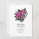 Convite de casamento de casal gótico floral vintage caprichoso em tons de rosa quente e azul marinho personalizável para os detalhes do seu evento.