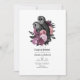 Celebre sua história de amor com este convite de casamento de casais elegante e inspirado em gótico. Com uma ilustração cativante de duas corujas cercadas por um bege roxo sombrio e rosas vintage com folhagem exuberante, este design é perfeito para eventos de Halloween ou casamentos com tema gótico. Personalize com nomes, data, local e detalhes do registro para uma celebração assombrosamente romântica.