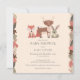 Com belos cervos, raposas, coelhos e folhas da floresta, este convite elegante e neutro em termos de gênero para chá de bebê, chuva de confeitos ou chá de casal pode ser personalizado com as informações do seu evento especial. O verso apresenta folhas da floresta espalhadas em um fundo verde musgo. Criado por Thisisnotme©