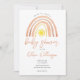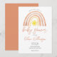 Um convite de chá de bebê fofo com um arco-íris aquarela boho e sol e tipografia estilosa. Criado por Thisisnotme©