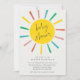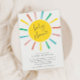 Um Convite de Chá de Bebê Moderno Chuva de Cores Sol com sol colorido e escrita à mão. Clique no botão de edição para personalizar este design com seus detalhes.