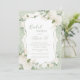 Bela e suave aguarela de hortênsias brancas rodeando uma bela moldura ornamentada com lindas fontes e caligrafias feitas em cores coordenadas para o convite do chá de noiva. Um fundo coordenado rosa e branco doce com hortênsias brancas suaves e folhas verdes delicadas. Um convite de chá de noiva perfeito para qualquer estação.