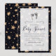 Convite Chuva de Estrelas Azul Marinho Bebe Reunião. Lindas estrelas douradas em um fundo azul marinho escuro com design de padrão de galáxia espacial e astronomia.