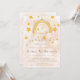 Convite moderno boêmio de chuveiro de bebê arco-íris & sol com poeira mágica e estrelas douradas. Clique no botão "personalizar mais" se desejar reorganizar e formatar o estilo e a colocação do texto.