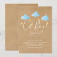 Perfeito para convidar amigos e familiares para um chá de bebê especial. Com nuvens azuis fofas e estrelas douradas em cordas, em um fundo kraft rústico, este convite de chá de bebê é perfeito para todos os meninos que estão a caminho. Adicione os detalhes da sua celebração em branco para criar o convite perfeito. Criado por Thisisnotme©