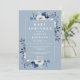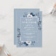Este convite de chá de bebê elegante com flores country azul empoeirado pode ser personalizado com suas informações em tipografia moderna. Criado por Thisisnotme©