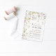 Este convite de Baby in Bloom moderno apresenta flores silvestres rosa e amarelo em aquarela, camomila rústica, folhas verdes e galhos. Aproveite!