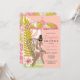 Convite de chuva de lingerie para noiva apresenta flor tropical azul de robins e azul turquesa, guarda-chuva e noiva afro-americana. Disponível com cabelo loiro, castanho e ruivo e pele clara e escura.