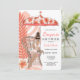 Convite de chuveiro de noiva lingerie apresenta flores tropicais coral e rosa, guarda-chuva e noiva morena a ser. Disponível com cabelo loiro, castanho e ruivo e pele clara e escura.