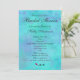 Convite de chá de noiva bonito e elegante. O fundo é uma pintura abstrata etérea e nebulosa em cores tropicais de verão - verde aqua, azul turquesa e roxo claro com um design marmorizado e manchado. As cores se misturam e se fundem para criar um padrão suave e delicado de névoa. Uma ilustração de uma rosa vermelha isolada fica na parte inferior. Personalize com os detalhes da sua festa.