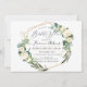 Aquarela rústica Flores de Alabastro e folhagens, Eucalipto em folhagem verde prateado e favo de mel falso dourado. Acentuado com convites de Chuva de Noiva com caligrafia elegante e moderna romântica. Cor de fundo DIY.