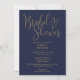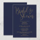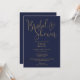 Convites Chuva de Noiva Azul Ouro Moderno Elegante Script
