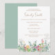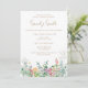 Personalize este convite de modelo com as informações da sua chuva de noiva. Este convite Boho apresenta um lindo design de folhas verdes e flores silvestres amarelas e rosas.