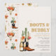 Vamos lá, garotas! Preparem-se para uma viagem selvagem para o Velho Oeste! Este convite divertido Botas e Bubbly é perfeito para um chá de noiva ou noite de despedida de solteira com tema western. Único e original, apresentando cactos desenhados à mão e pintados à aquarela, botas de cowboy e chapéus fáceis de personalizar. Então coloque seu chapéu de cowboy e prepare-se para o último rodeio!