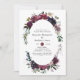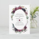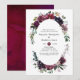 Convite de casamento boêmio floral em aquarela com tons de vinho tinto bordô e roxo escuro e detalhes em rosa claro personalizável para os detalhes do seu evento.
