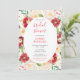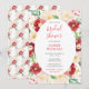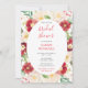 Este convite de chá de noiva em aquarela fofo e caprichoso apresenta flores coloridas em vermelho e creme com folhagem verdejante. O texto combina fontes manuscritas e sem serifa para um visual moderno e elegante. É perfeito para um chá de noiva de primavera ou verão.