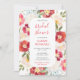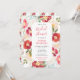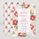 Este convite de chuva de noiva em aquarela fofo e caprichoso apresenta flores coloridas em vermelho e creme com folhagem verdejante. O texto combina fontes manuscritas e sem serifa para um visual moderno e elegante. É perfeito para uma chuva de noiva na primavera ou verão.