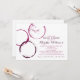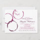 Um convite de chuva de noiva chic e criativo com anéis sobrepostos de manchas de vinho borgonha em um fundo branco limpo. A caligrafia e a tipografia serif elegante em tons borgonha coordenados criam uma estética sofisticada inspirada em uma vinícola. Perfeito para uma celebração temática de vinho ou almoço. Todo o texto é totalmente editável para se adequar aos detalhes do seu evento.