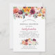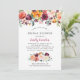 Um convite de chuva de noiva fresco e vibrante com aglomerados florais em aquarela no topo e na parte inferior em tons ricos de outono de borgonha, coral, laranja e rosa com folhagem suave em um fundo branco limpo. O layout aberto mantém o design arejado enquanto a paleta sazonal define um tom quente e convidativo. Todo o texto é totalmente editável para a celebração da sua festa de casamento.