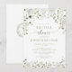 Celebre com estilo com este convite de chuva de noiva botânico elegante e atemporal, apresentando uma delicada rosa de água branca e flores de peônia rodeadas por folhagem luxuriante e folhas de eucalipto. Perfeito para uma chuva de noiva na primavera ou verão, este charmoso design complementa lindamente celebrações inspiradas em boho, jardim e natureza.