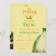 Convite de Chuva de Noiva temático de Princesa Sapo com cores amarelo, laranja e verde pintadas aquarela, coroa de ouro e vestido que você pode personalizar para suas necessidades. Este tema encantado e caprichoso transportará seus convidados para uma atmosfera mágica. Itens correspondentes você pode encontrar na coleção da minha loja PatternDigitPics.