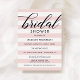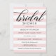 Um convite de chá de panela moderno e feminino com listras horizontais rosa e branco e um título "noiva" em caligrafia preta. O contraste elevado da caligrafia preta nas listras rosa cria uma estética limpa e elegante. Todo o texto é totalmente editável para personalizar sua celebração de chá de noiva.