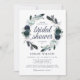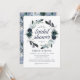 Convites de chuva de noiva rústicos boho bloom com um fundo branco chic que pode ser alterado para qualquer cor, um design de grinalda floral azul aquarela fofo e um modelo de festa de noiva moderno que é fácil de personalizar.