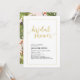 Celebre seu dia especial com este convite de chuva de noiva elegante que apresenta tipografia dourada simples e elegante e padrões tropicais. Perfeito para chuva de noiva de verão, festa temática tropical, casamento de destino, etc.