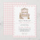 Ela está fresca do mercado! Um convite de Chuva de Noivas com um carrinho de flores charmoso com fundo de gingado rosa.
