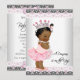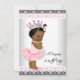 Convite de chá de bebê de princesa étnica cor-de-rosa com tutu de bailarina para bebê menina adorável com doce bebê menina vestindo tutu rosa, colar de pérolas e coroa bonita em um belo fundo de renda rosa e cinza. Este convite de chá de bebê cor-de-rosa e preto é facilmente personalizado para o seu evento, adicionando os detalhes do evento, estilo de fonte, tamanho e cor da fonte e texto.