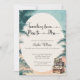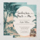 Celebre a noiva com este convite de chá de noiva elegante “Chuva de presentes de Miss a Mrs”. Com uma paleta de cores coral suave e azul-turquesa, folhas de palmeira em aquarela e malas vintage, é perfeito para uma celebração tropical ou com tema de destino. Fontes de letra cursiva elegantes e um layout limpo adicionam um toque romântico e inspirado em viagens vintage a um chá de noiva moderno. O texto tem pequenos corações na letra cursiva para adicionar um toque extra.