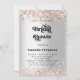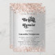Um fundo com aparência de prata falso. Decorado com brilho falso rosa ouro. Personalize e adicione um nome e detalhes da festa. O nome é escrito com um estilo de letra manuscrita