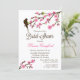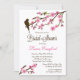 © Socialite Designs. Celebre o próximo casamento da noiva com este elegante convite de chá de noiva com flor de cerejeira (sakura) e pássaros. Texto adicional pode ser adicionado no verso do convite. Personalize facilmente este convite para outras ocasiões especiais pressionando o botão "Personalize" e adicionando as informações do seu evento.