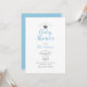 Um convite elegante para chuveco de bebê, chuveco ou casais, apresentando uma adorável pedrinha de praia em forma de coração. Personalize com as informações do seu evento especial em letras cinza chic e azul bebê. Desenhado por Thisisnotme©
