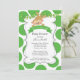Convite de chuveiro de bebê macaco neutro fofo com um macaco doce balançando em uma videira de folha da selva em um fundo verde com pontos. Vire nosso convite moderno do macaco para encontrar um verso com pontos para um toque extra especial. Ótimo para um chuveiro de bebê com tema de selva, tema de safari ou tema de macaco para um chuveiro de bebê neutro para uma menina ou um menino.