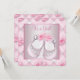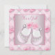 Convites de chuveiro de bebê menina com sapatinhos rosa adoráveis e brotos de rosa branca. Este convite de chuveiro de bebê rosa é facilmente personalizado para o seu evento, basta adicionar os detalhes do evento, estilo de letra, tamanho e cor da letra e texto.