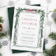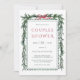 Este convite de chuveiro de casais elegante apresenta uma grinalda de pinheiro de Natal em aquarela acentuada com um laço de fita vermelha encantadora.